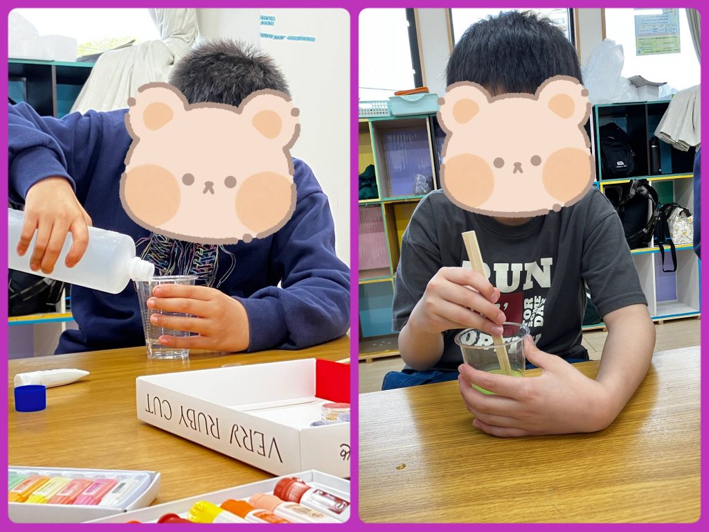 出来上がると伸ばしてみたり形を変えてみたりして楽しんでいました