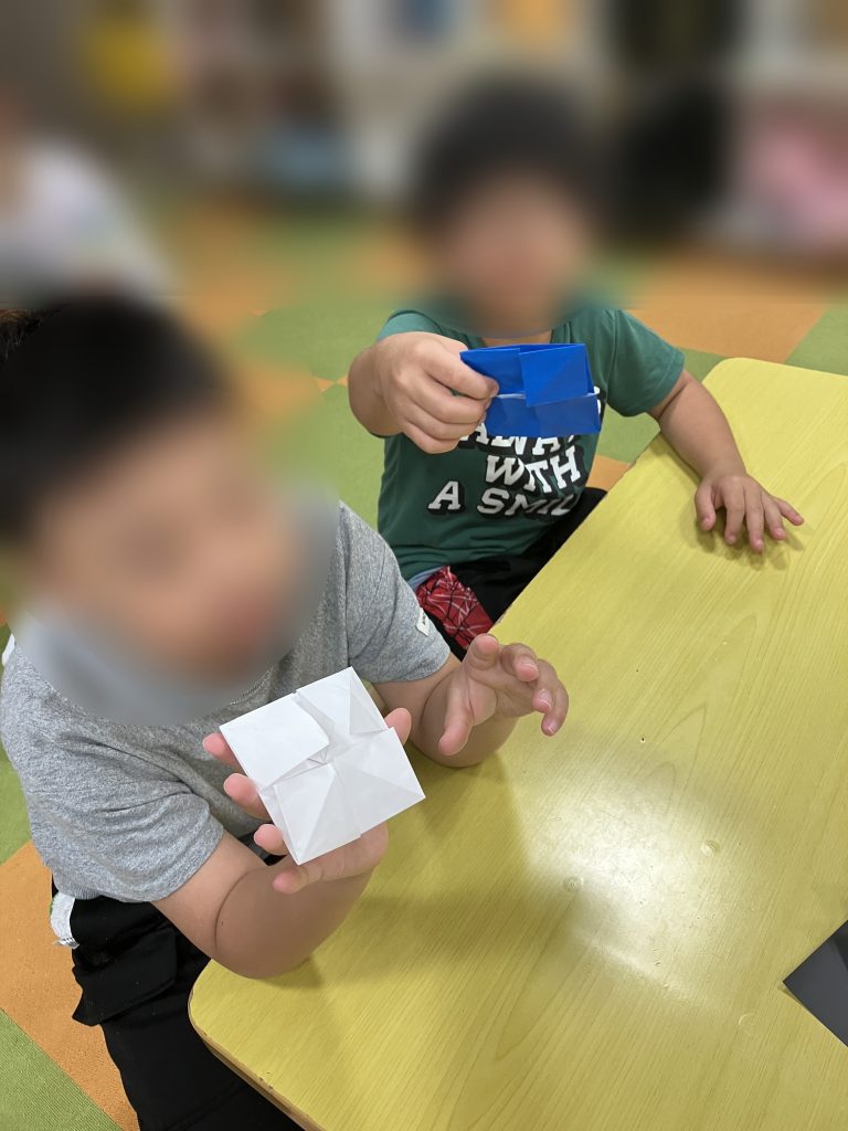 その後は、折り紙の本を見たりしながら、紙飛行機や馬などなど…色々なものを折って楽しみました。みんな、上手に折る事が出来ていました♪