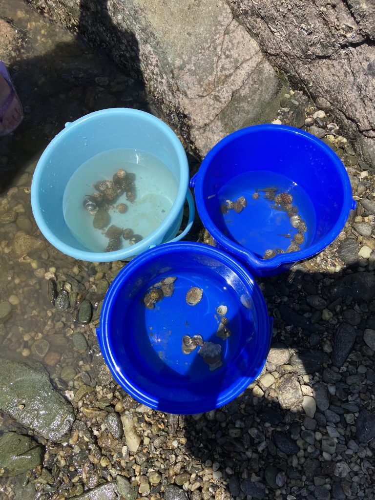 捕まえてバケツに入れても「ぴょーん‼」とと飛び出して海の中へ‼