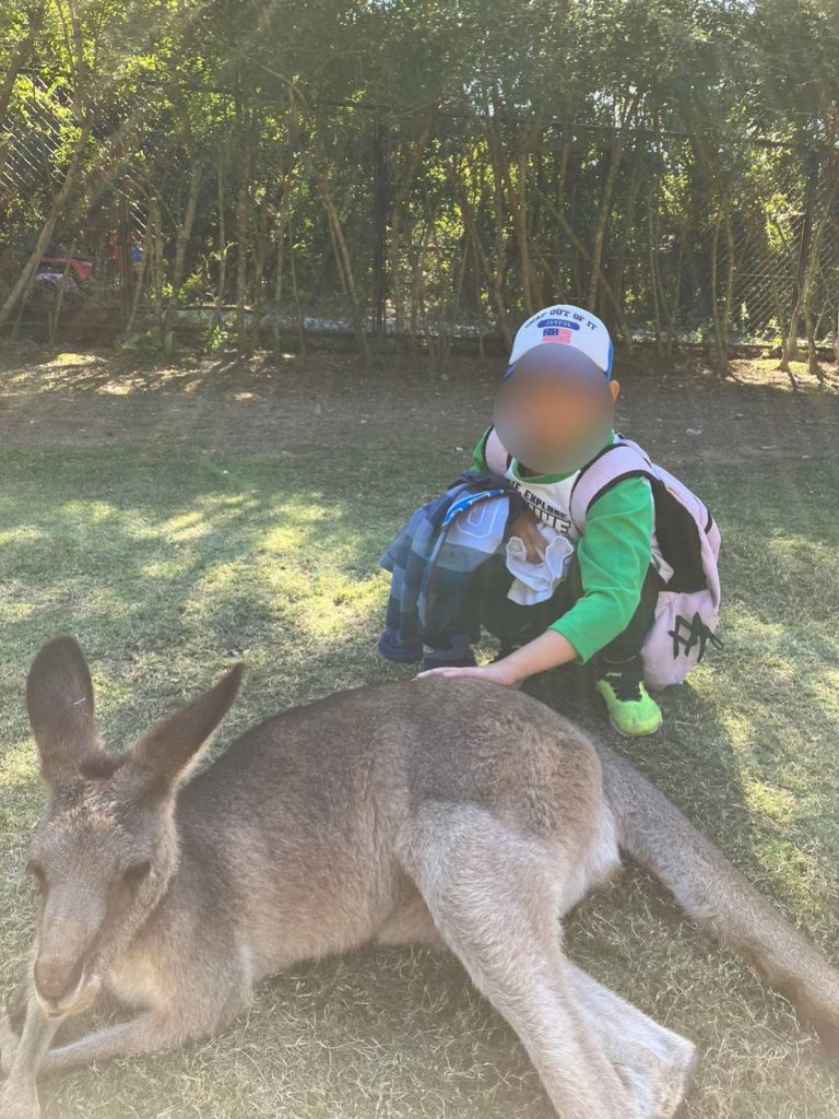 大きなカンガルーもいましたが、勇気を出して触っています(笑)