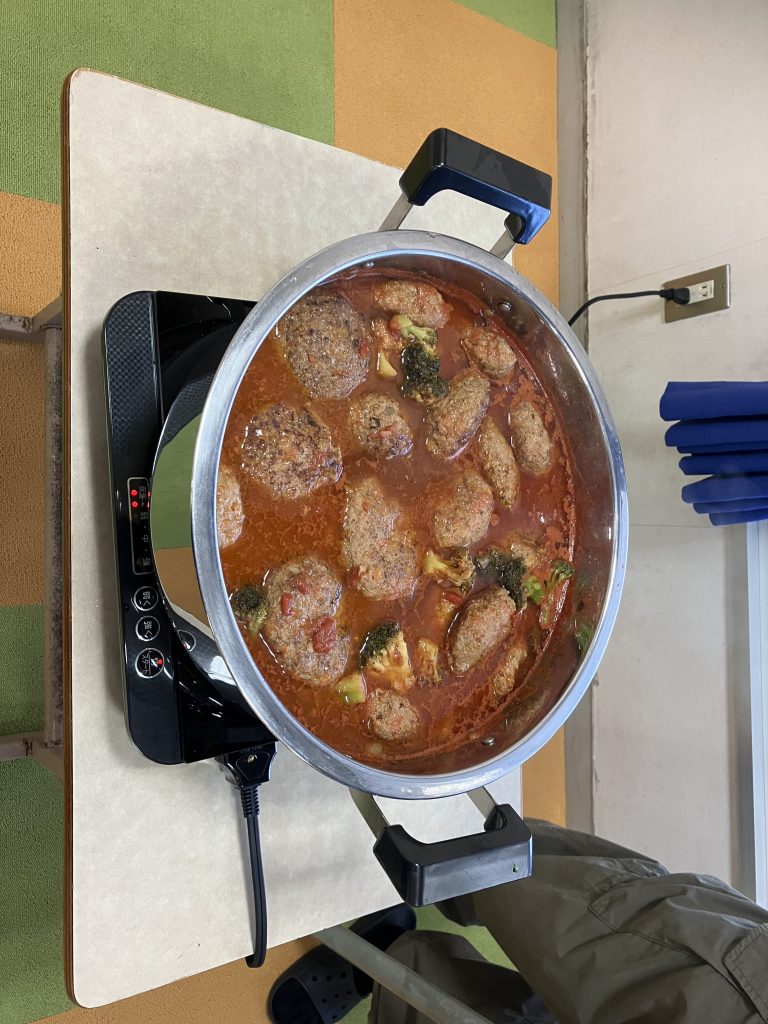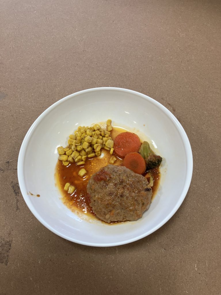 煮込みハンバーグを作りました。ハンバーグを作ったり、野菜を切ったり、煮込んだり…みんなで協力して作りました(^^)/