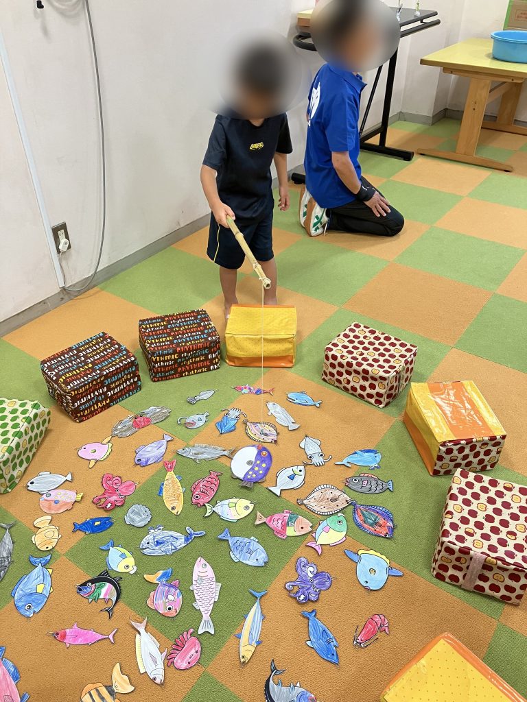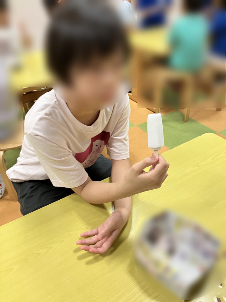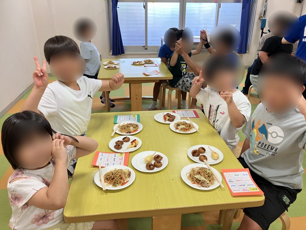 昼食は屋台風にして、たこ焼き、焼きそば、アメリカンドックを食べました(^^♪ 食事の後は、ヨーヨー釣り、魚釣り、スーパーボールすくい、射的、輪投げなどを楽しみました(^^)/ アイスとラムネもおいしかったです(#^.^#)